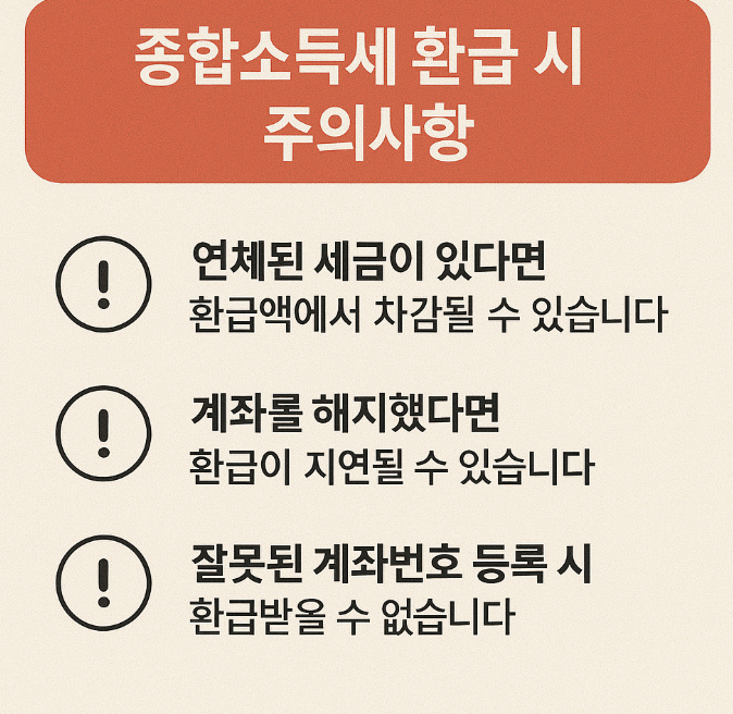 다음과 같은 주의사항을 미리 숙지해야 예상치 못한 환급 지연이나 불이익을 방지할 수 있습니다: